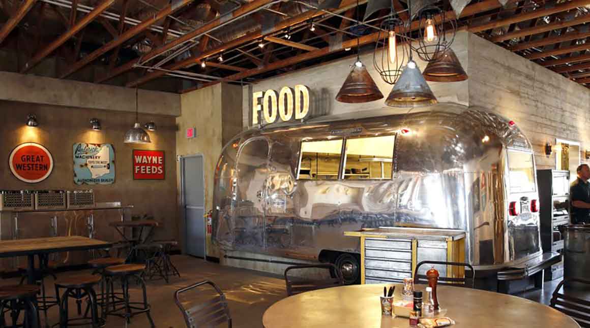 Located in the heart of Ocean Beach, this 6,000-square-foot restaurant was completely transformed inside and out with an industiral warehouse style. The design centers around an Airstream trailer, a giant concrete bar with 24 beer taps, eclectic art and a fun atmosphere!